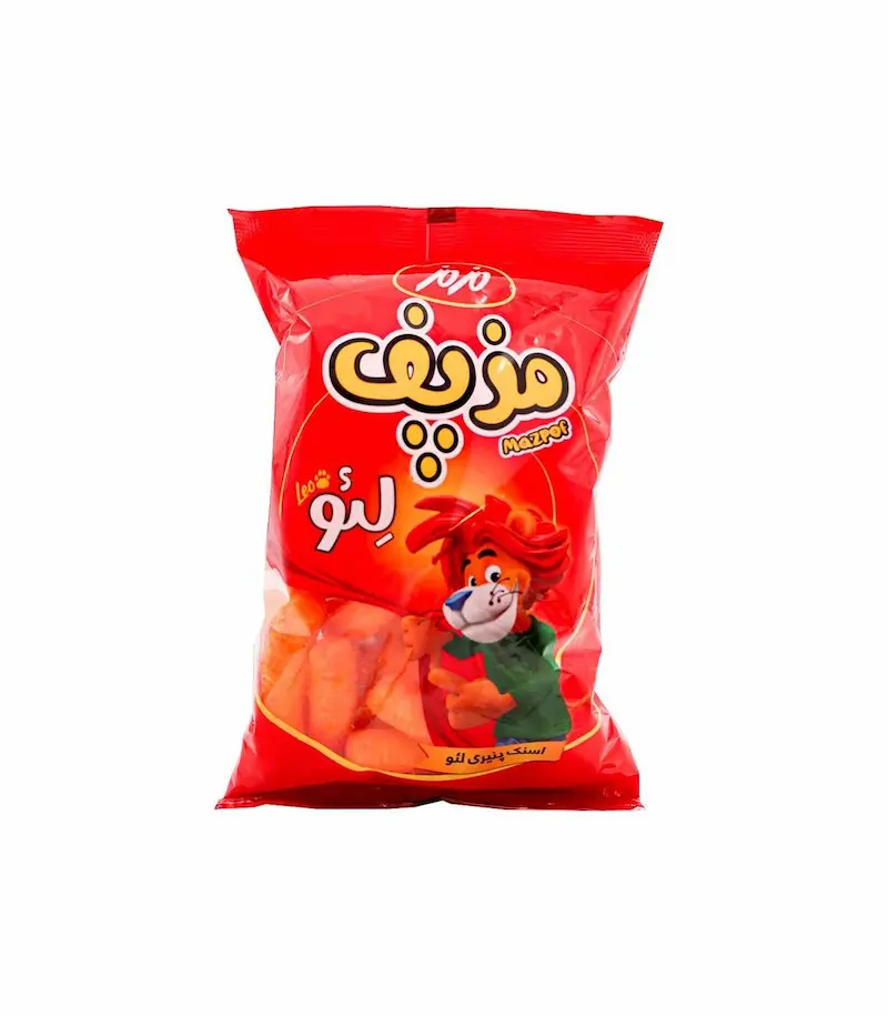 اسنک لئو ۳۵ مزمز یکی از محبوب‌ترین میان‌عده‌های ترد و نمکی این برند است که از بلغور ذرت باکیفیت تهیه شده است. این محصول با استفاده از تکنولوژی پخت غیرسرخ‌کردنی (اکسترود شده) تولید شده و دارای بافتی بسیار ترد و سبک است. طعم پنیر طبیعی و چاشنی‌های خاص به‌کار رفته در لئو ۳۵، آن را به یک تجربه لذت‌بخش برای کودکان و بزرگسالان تبدیل کرده است. شکل ظاهری این اسنک به صورت استوانه‌ای کوتاه و متخلخل است که به خوبی با پودر پنیر پوشانده شده است. بسته‌بندی متالایز این محصول باعث حفظ تازگی و جلوگیری از نفوذ رطوبت به داخل اسنک می‌شود.