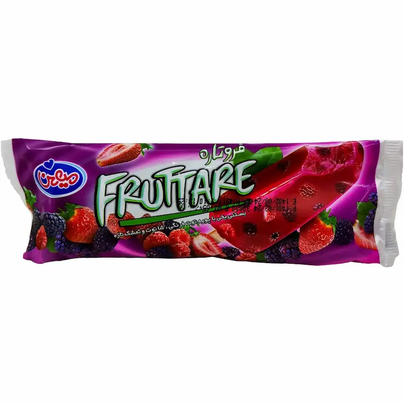 بستنی یخی (آلاسکا) میهن در طعمهای میوهای متنوع (پرتقال، آلبالو، توت فرنگی).