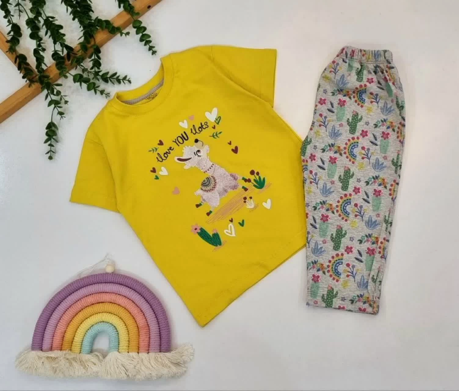 ست تیشرت و شلوارک بچگانه با چاپ فانتزی لاما و رنگهای پرانرژی، انتخابی شاد و راحت برای کودکان خوشسلیقه.