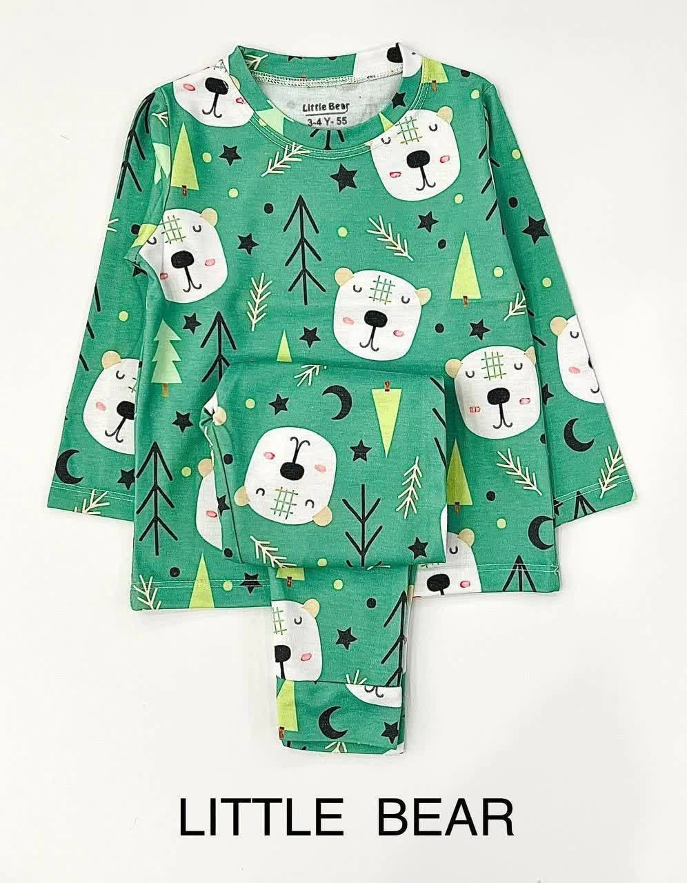 ست بلوز و شلوار بچگانه با طرح کاج و خرسهای فانتزی، انتخابی گرم و نرم برای فصلهای سرد.