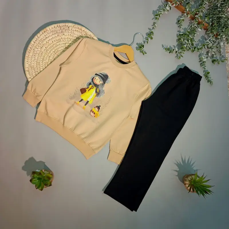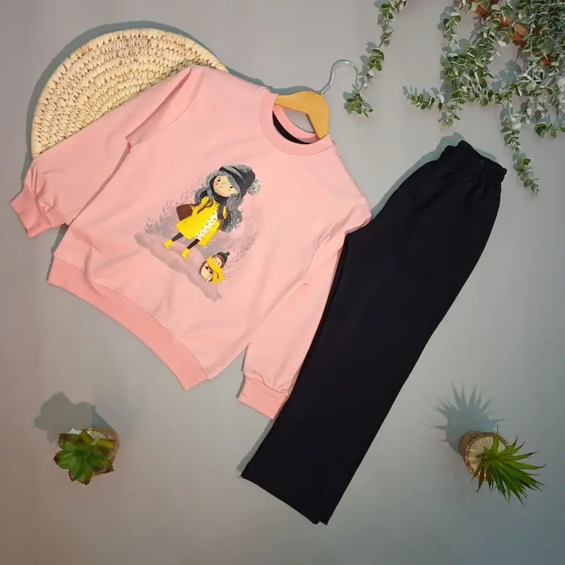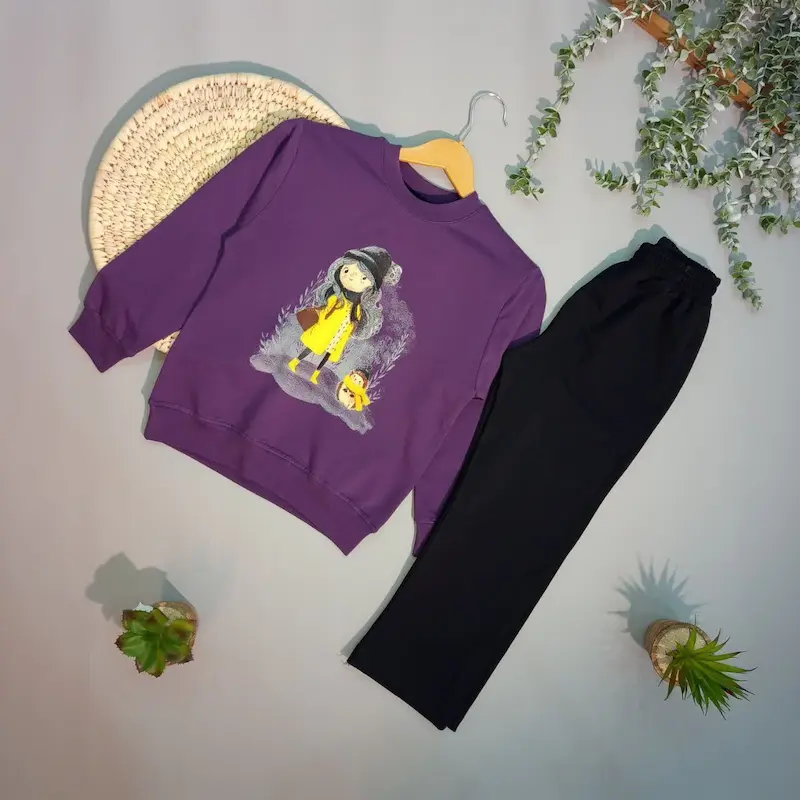 بلوز و شلوار دخترانه طرح دختر و جوجه تیغی