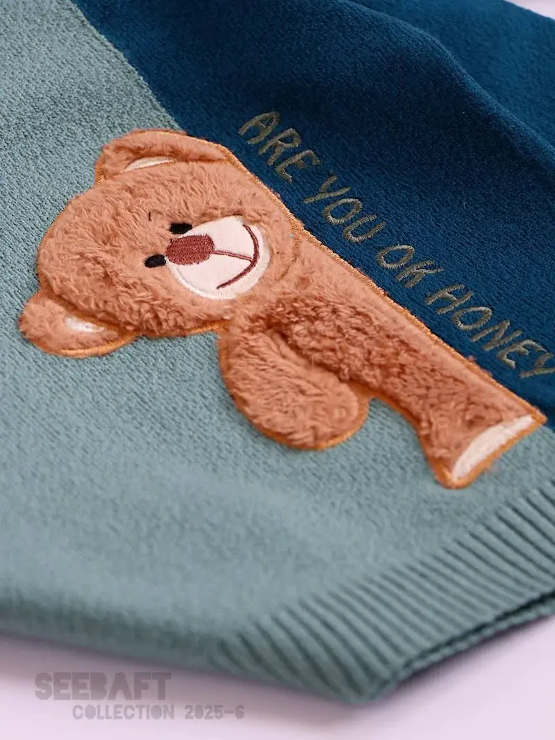 جنس نخ گپ عالی، بافت خرس مخملی برجسته، تکه دوزی شده، کشسانی داره، گرم و مناسب فصل