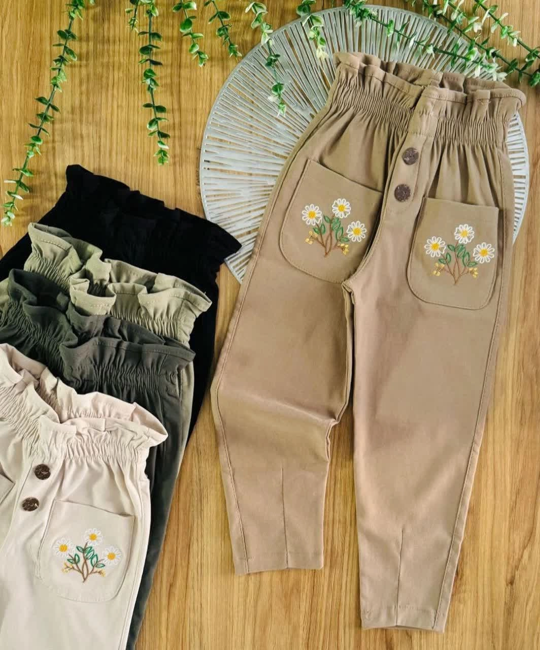 شلوار بچگانه «لیلا» با فرم مام استایل و گلدوزی گلدار، ترکیبی از راحتی و زیبایی برای استایلهای روزمره و نیمهمجلسی.