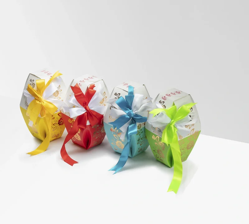 شکلات کادویی الناز باراکا با بستهبندی رنگی. شکلاتهای تکنفره مناسب برای پر کردن ظرف پذیرایی.