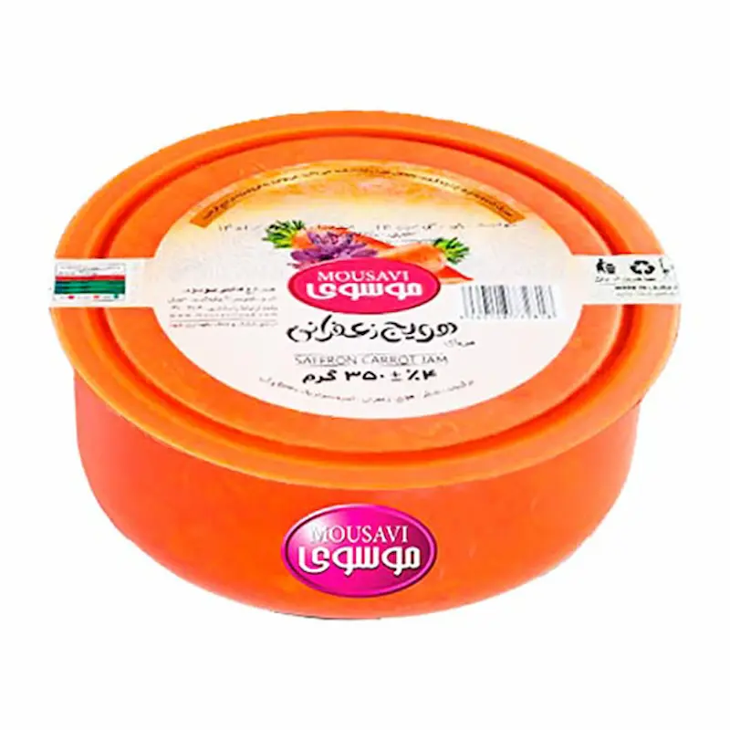 مربا هویج ظرفی موسوی مربایی خوشطعم و خوشرنگ تهیهشده از هویج تازه و باکیفیت. با بافتی نرم و طعمی دلنشین، مناسب صبحانه و میانوعده، در بستهبندی ظرفی کاربردی و بهداشتی.