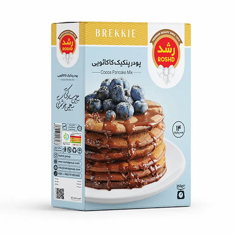 پودر پنکیک شکلاتی رشد. گزینهای جذاب برای دوستداران شکلات در وعده صبحانه یا عصرانه.